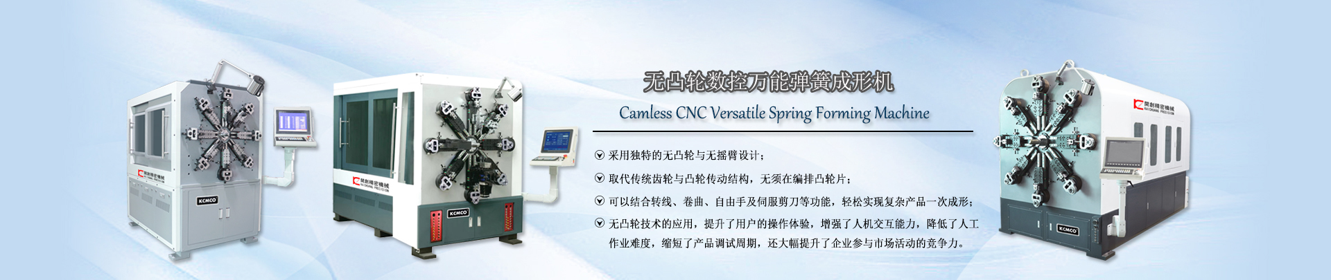 東莞市開創精密機械有限公司是目前國內專業研發、生產和銷售為一體的彈簧機廠家,供應φ0.15-20.0mm之間不同型號的電腦彈簧機設備,覆蓋了電腦壓簧機、數控萬能彈簧機和無凸輪彈簧機等數控彈簧機產品,還提供彈簧機價格和彈簧機視頻等信息。多年的發展,開創積淀了雄厚的技術實力和生產規模,掌握了彈簧機成形的核心前沿技術,機型以“快、準、穩”特點著稱,得到了用戶的高度認可與好評,并遠銷至世界多個國家及地區。